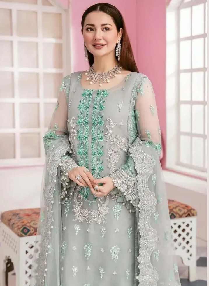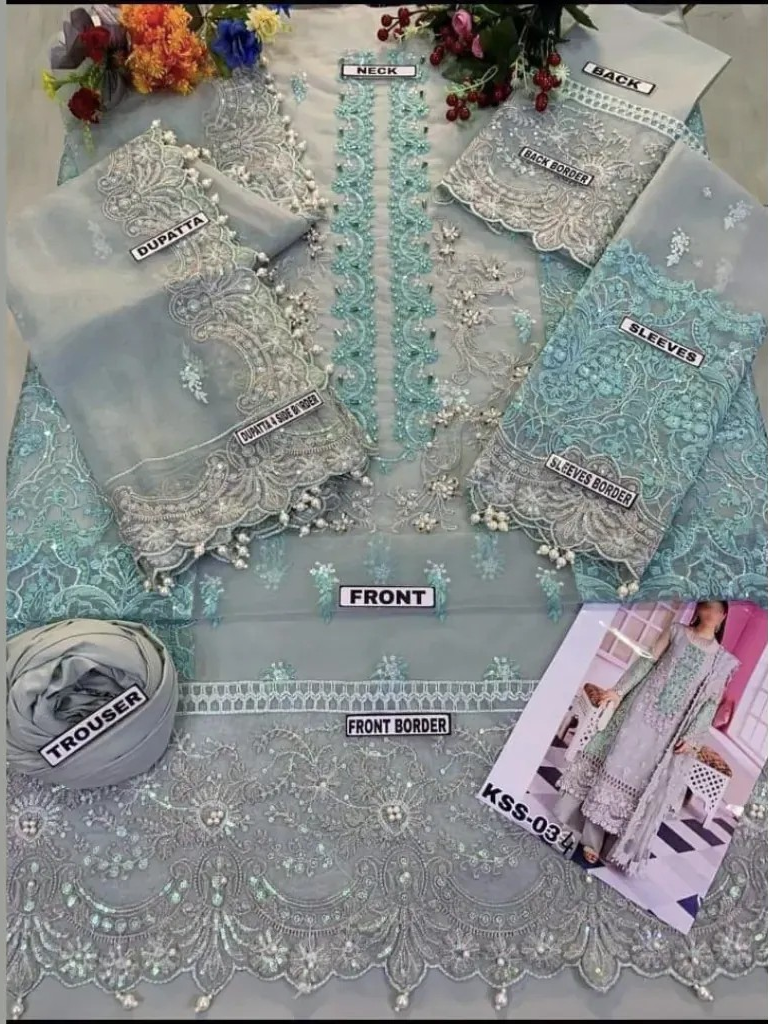 Elevate your festive wardrobe with the timeless charm of ELAF’s Luxury Organza Embroidered 3PC Suit. This designer piece is an exquisite blend of traditional craftsmanship and modern flair. The organza front is adorned with intricate embroidery, shimmering sequence, and hand-placed stones, while the neckline features detailed adda and stone work that adds a regal touch. The back boasts elegant cutwork embroidery on sheer organza, and the sleeves are beautifully designed with embroidery and delicate pearl embellishments.