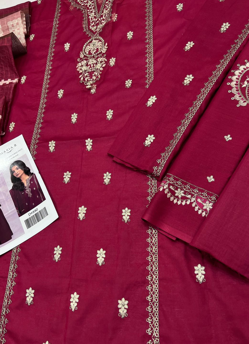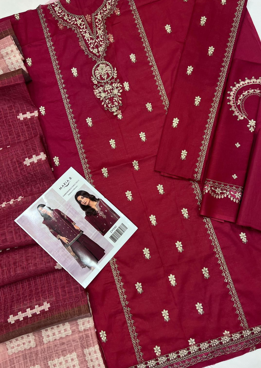 Maria B. Maroon Embroidered Three-Piece Suit Lawn with Digital Diamond Dupatta Luxury